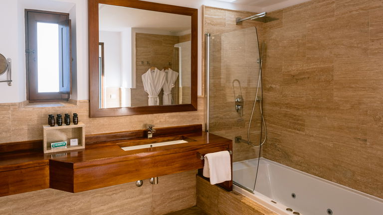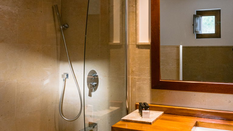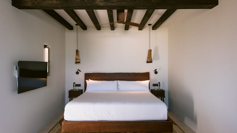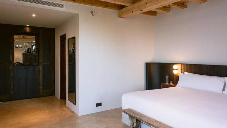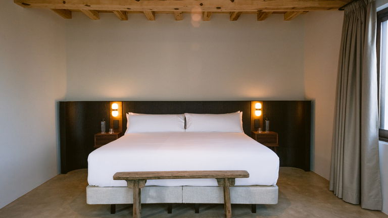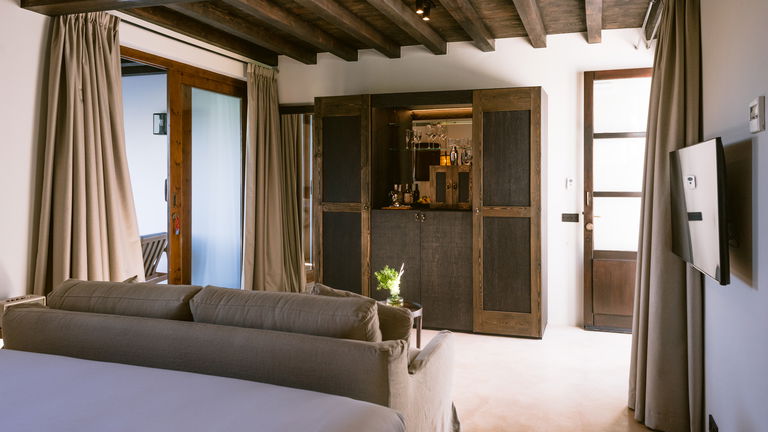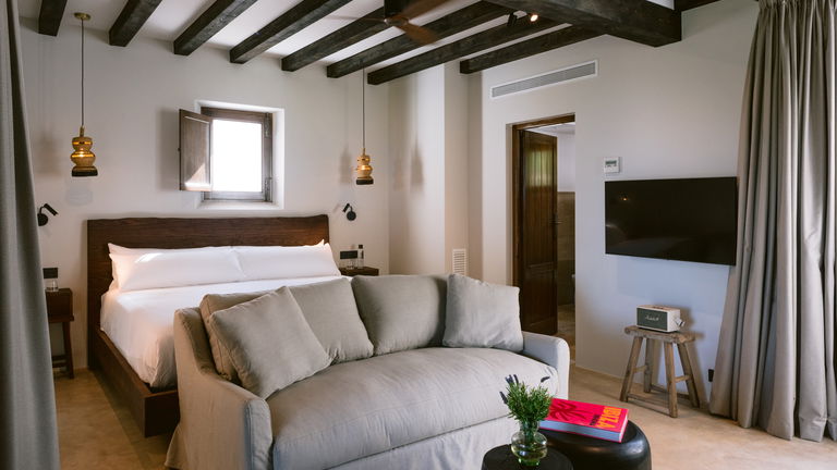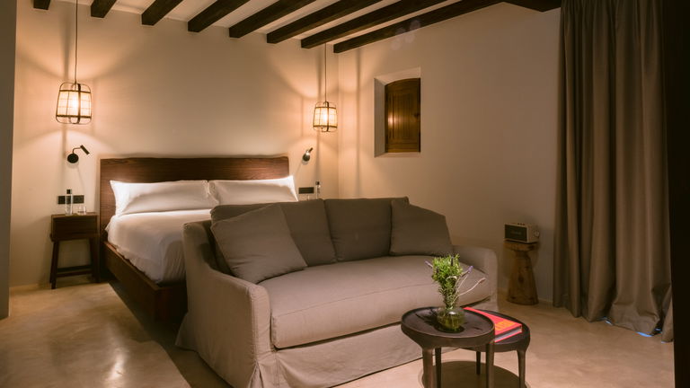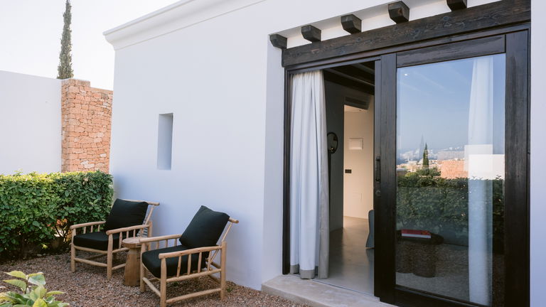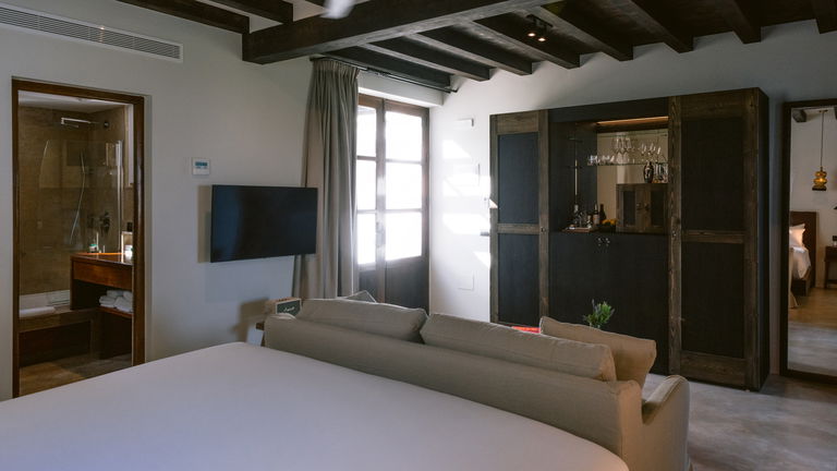 All consist of a spacious room with a double bed, 300 thread count Egyptian cotton bed linen. Air conditioning and fan, full bathroom with bathtub and Dyson hairdryer, Aesop amenities, minibar with a large selection of premium drinks and snacks, Nespresso coffee machine, safe, Marshall speaker, 43-inch flat-screen TV with ChromeCast system. Yoga equipment. Terrace with views of Dalt Vila and the sea, free Wi-Fi.