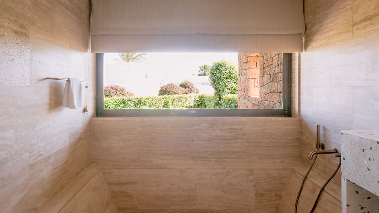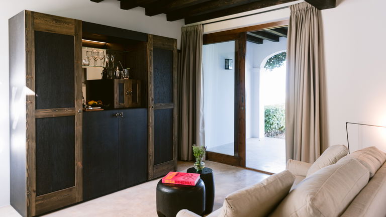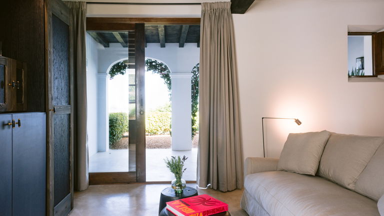 Casa Maca has 3 Suites that are different from each other but just as special. One of them has a large terrace with natural grass and spectacular views of the sea and Dalt Vila. In another you will find a typical fireplace that decorates the room. And in another a big bath to relax.