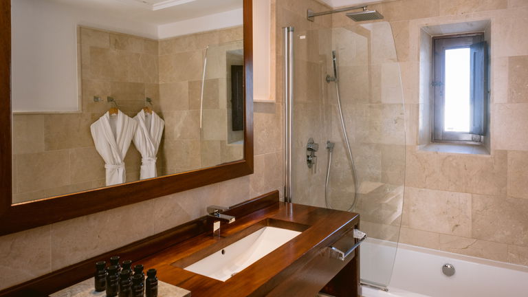 Room with double bed, 300 thread count Egyptian cotton bed linen. Air conditioning and fan, full bathroom with bathtub and Dyson hairdryer, Aesop amenities, minibar with a large selection of premium drinks and snacks, safe, Nespresso coffee machine, Marshall speaker, 43-inch flat-screen TV with ChromeCast system. Yoga equipment. Terrace with views of Dalt Vila and the sea, free Wi-Fi.